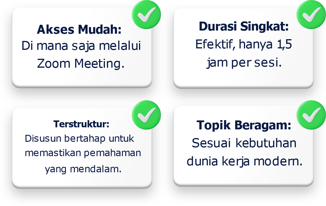 Pelatihan intensif yang dirancang untuk meningkatkan kompetensi dan membuka peluang karier Anda.