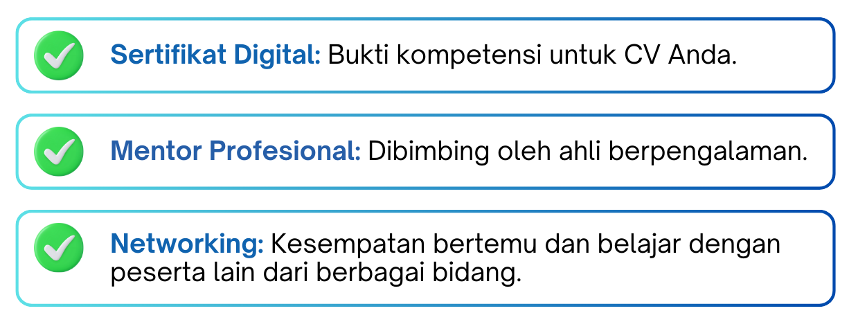 Pelatihan intensif yang dirancang untuk meningkatkan kompetensi dan membuka peluang karier Anda.